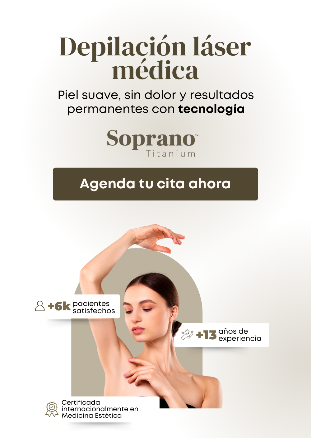 La depilación láser con Soprano Titanium es una de las tecnologías más cómodas del mercado. Por esto lo elegí para mi consultorio. A diferencia de otros láseres, este tiene un sistema que calienta el folículo de manera gradual, por lo que la mayoría de pacientes sienten solo una sensación de calor tolerable. Cómo médica con amplia experiencia te aseguro que no es un procedimiento doloroso y está especialmente diseñado para que la sesión sea rápida y confortable.